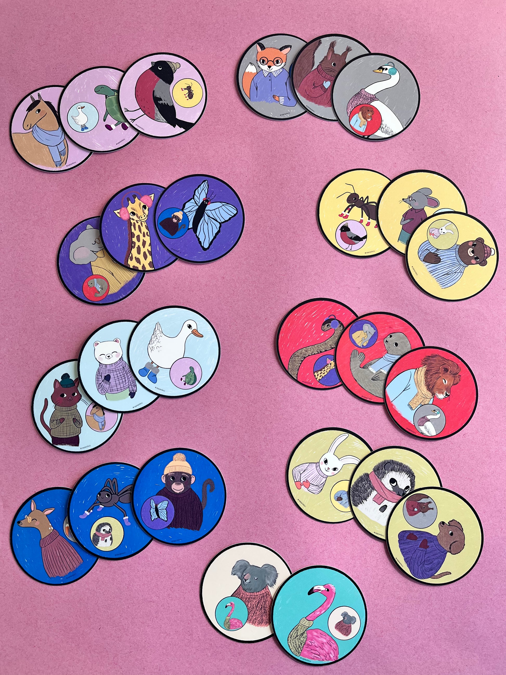 - Parit jakautuvat kiekkojen pienissä ympyröissä olevien eläinten avulla.